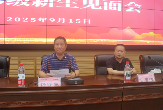 党委书记舒谷生首先代表学院对2025级新生的到来致以热烈而诚挚的欢迎。结合学院育人理念与时代要求,他向新生们提出三点殷切期许:一是永葆“求知若渴”的好奇心,勇于钻研、勤于发问;二是锤炼“求真务实”的硬本领,注重实践、学以致用;三是涵养“胸怀家国”的大格局,将个人成长融入国家发展和时代进程。
