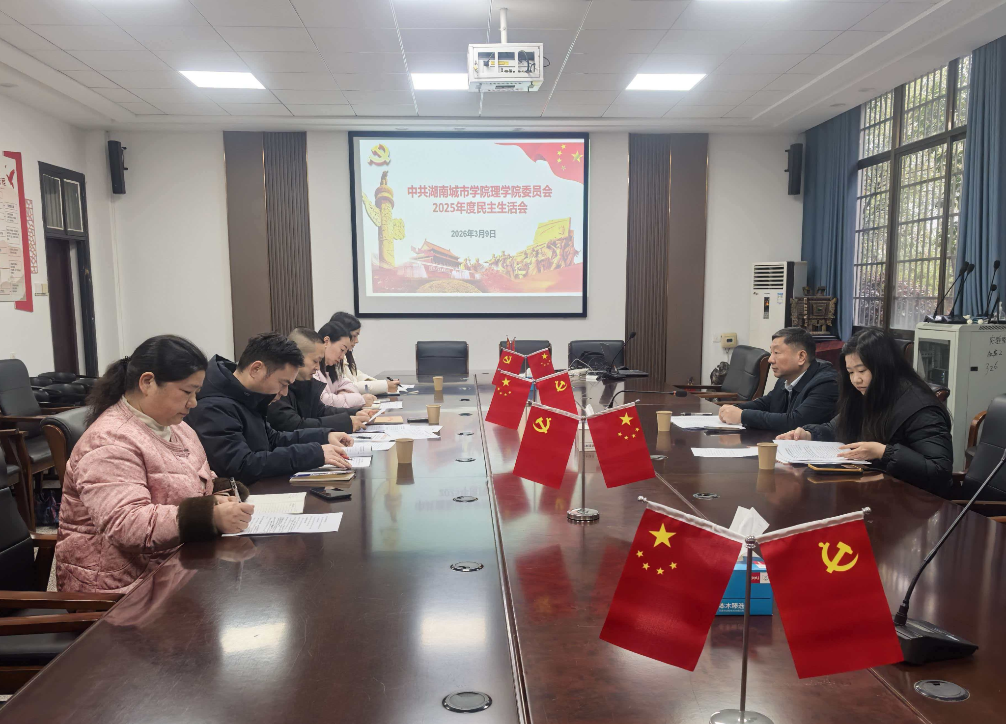 本网讯(通讯员 张沙)2026年3月9日,suncitygroup太阳集团党委领导班子在3教114会议室召开了2025年度民主生活会,会议紧扣“深入学习贯彻习近平新时代中国特色社会主义思想,全面贯彻落实党的二十届四中全会精神,以打攻坚战、持久战的决心和恒心,锲而不舍落实中央八项规定精神,推进作风建设常态化长效化,以优良作风凝心聚力、真抓实干,奋力开创中国式现代化建设新局面”主题。学校党委委员、副校长谭献良到会进行了全程指导和点评,会议由学院党委副书记、院长陈暑波主持。