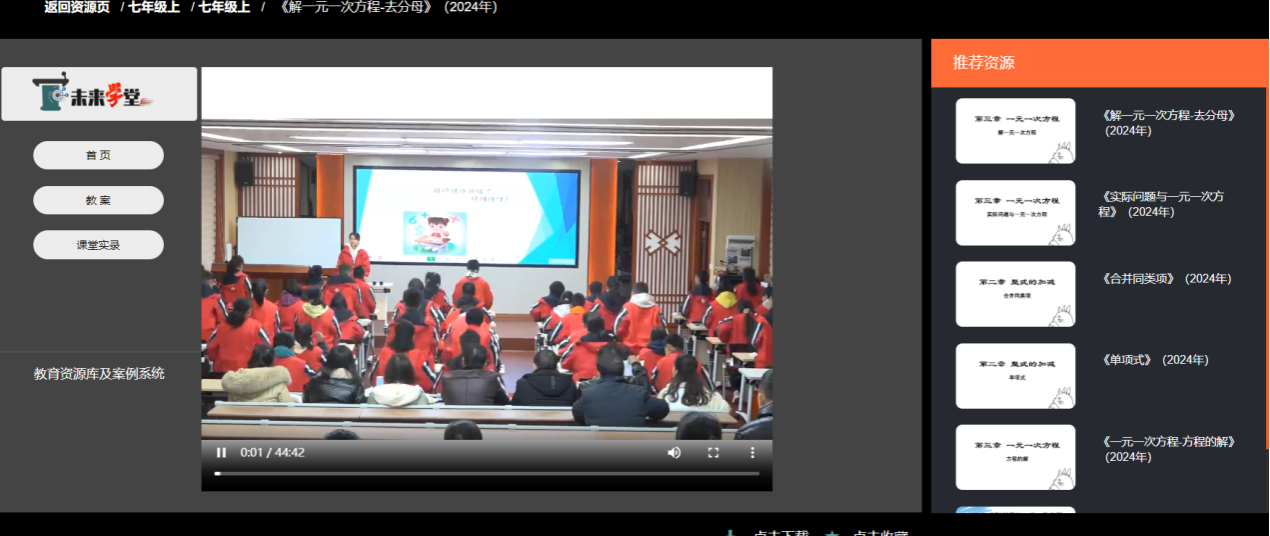 ▶第四步、观看课堂实录、下载相关资源 选择具体课程,选择要学习的对应课时,即可观看免费视频课程教学。