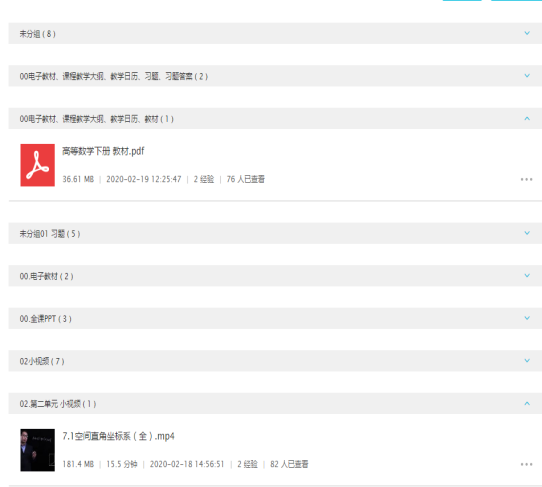 2、李夏云主讲课程《高等数学(下)》。该课程首先通过利用蓝墨云平台,发布中国大学MOOC平台的优质教学资源,采取课程团队研讨方式确定共享教学资源,以视频、PPT、电子教材、电子教案、教学大纲等方式上传学生学习资料。为保证线上教学效果,多管齐下,数招并用。课前认真准备,课前先录制好与学习章节有关的小视频,上传云班课,以备学生预习;提前发布好投票问卷、头脑风暴、答疑讨论等教学问题;提醒学生做好教学平台测试准备,等等。