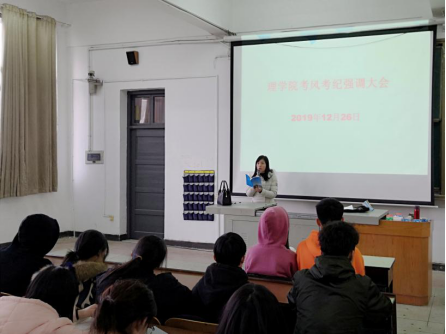 12月26日,期末考试到来之际,suncitygroup太阳集团在一教408教室召开了“考风考纪”强调大会。suncitygroup太阳集团易志明副书记、辅导员张沙老师及suncitygroup太阳集团大一全体同学参加了此次会议。