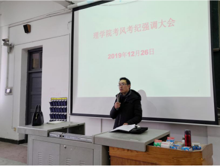 大会的开始,易志明副书记首先根据学校下达相关文件的指示精神强调了考风考纪建设的重要性,为大家列举了关于违规作弊行为风险和后果,并针对学院往届考生考试违纪作弊的情况进行列举讲解,警醒同学们诚信考试,切勿舞弊,鼓励同学们能规规矩矩考试,端端正正做人。