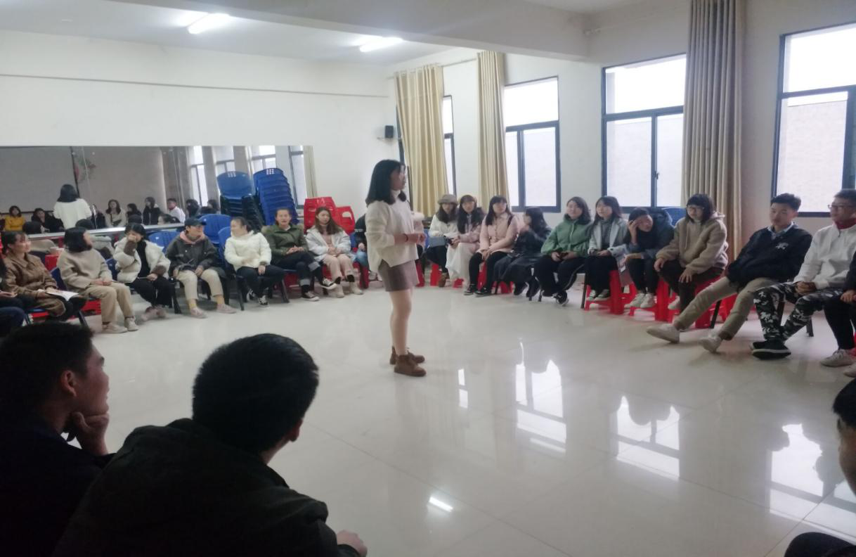 这次活动共分成三部分:先是由心理朋辈辅导员向晓娟学姐作开场介绍,关于此次活动的意义以及对同学们的重要性做了阐述,随后进入了游戏环节。游戏分为三个,分别是击鼓传花、数数抱团以及同物异位。三个游戏极大的调动了同学们的积极性,每个游戏后的惩罚也是让同学们对自己进行了深刻的思考,使同学们受益匪浅。最后再由向晓娟学姐进行了总结,此次团体辅导圆满结束。