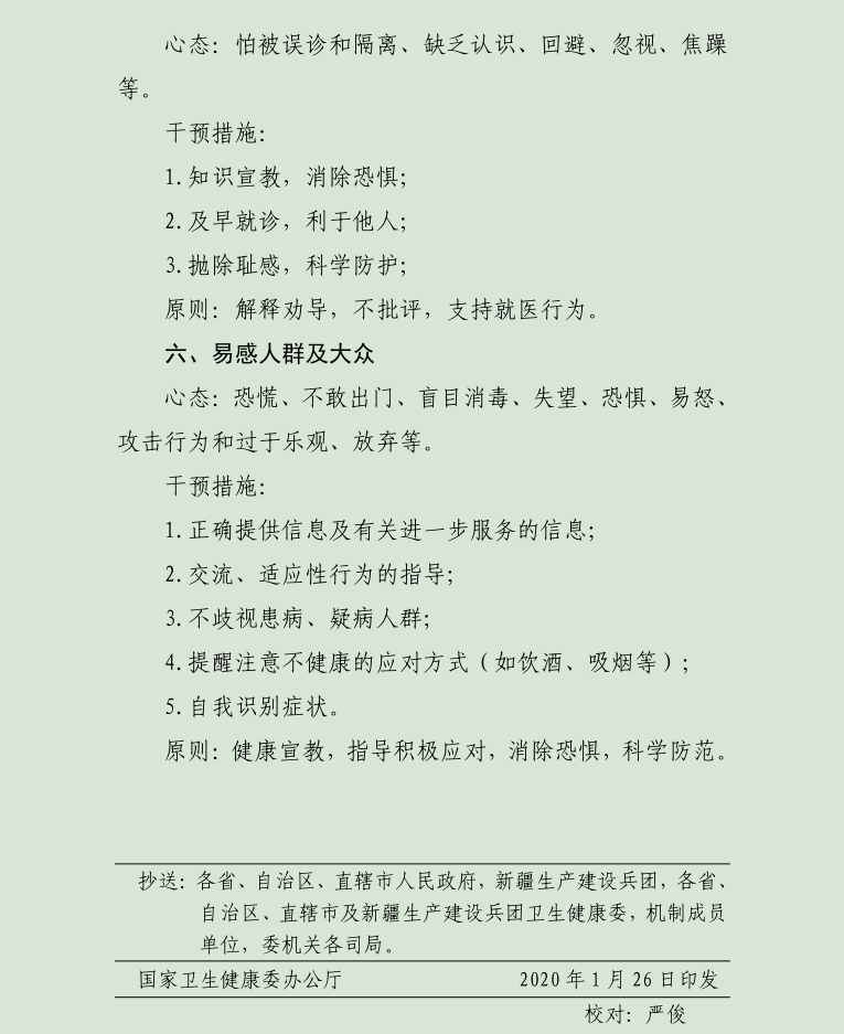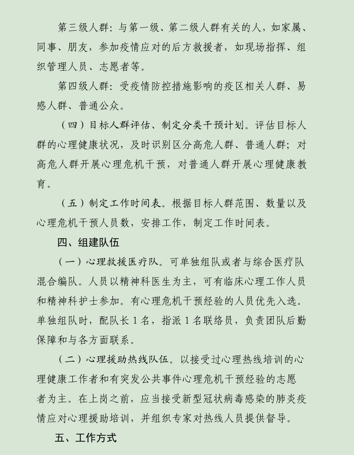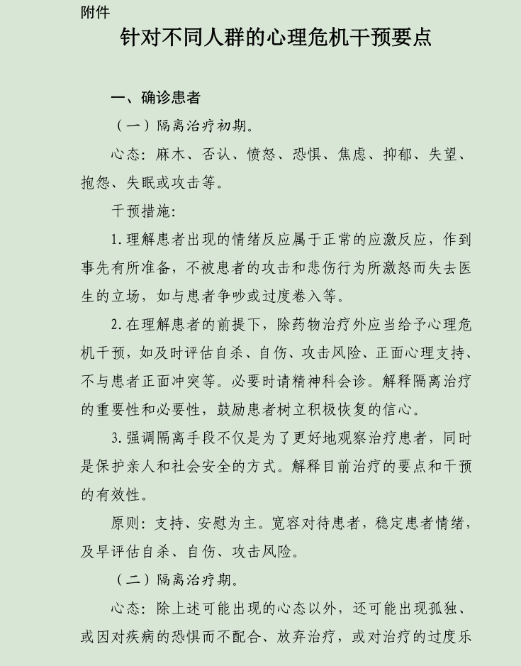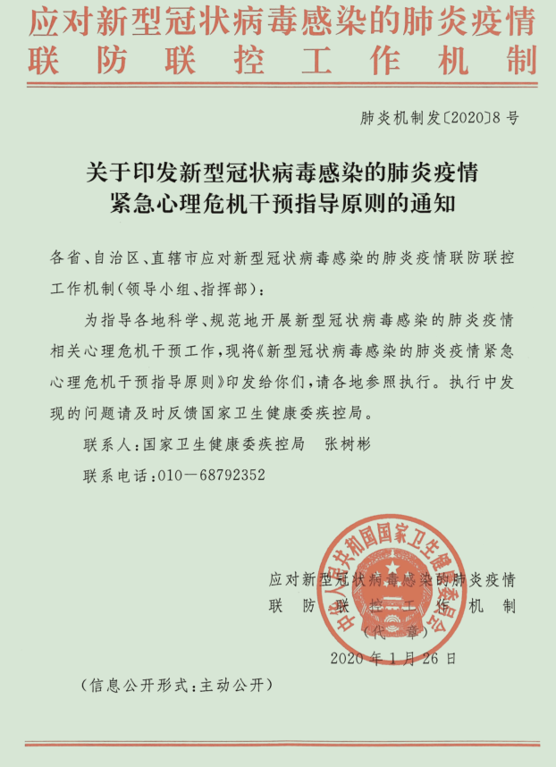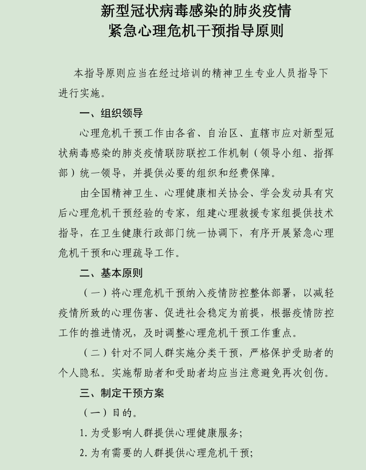 关于印发新型冠状病毒感染的肺炎疫情紧急心理危机干预指导原则的通知
