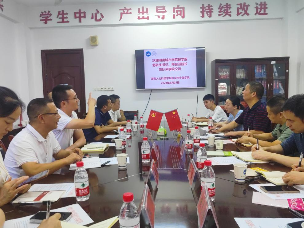 访问于2024年8月25日上午正式启动,双方在湖南人文科技学院致远楼605会议室举行了交流座谈会。湖南人文科技学院数学与金融学院党总支书记陈国华、副院长罗志军、副院长龙志文及部分教师代表热情接待了来访团队,院长李军成主持了会议。