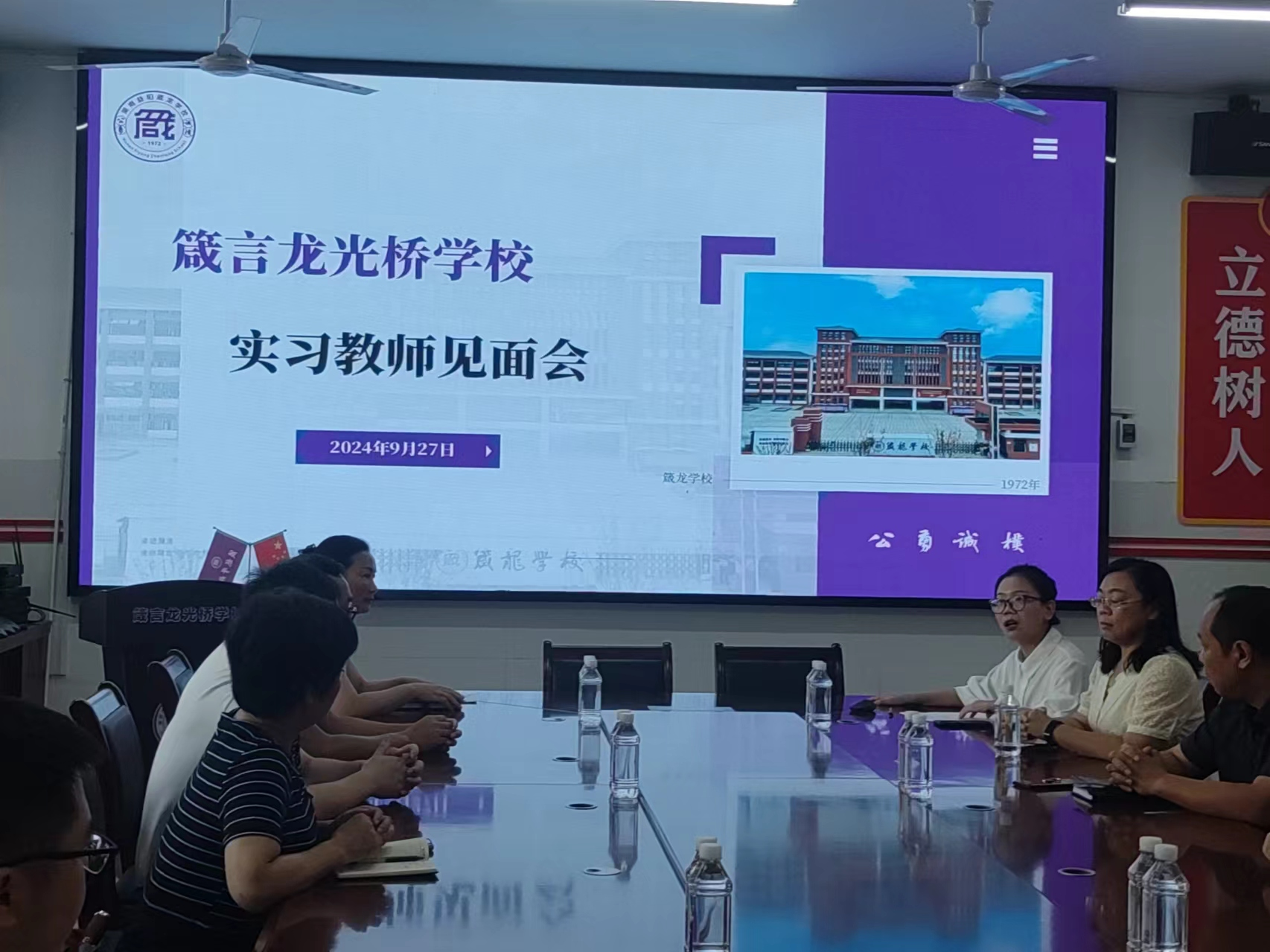 实习见面会在箴龙学校行知楼举行。会议由箴龙实习负责人夏欣老师主持,箴龙学校教学校长、后勤保障校长、工会主席、数学教学负责人、suncitygroup太阳集团教学院长代安定、系主任孙惠和指导老师傅建辉出席了见面会。