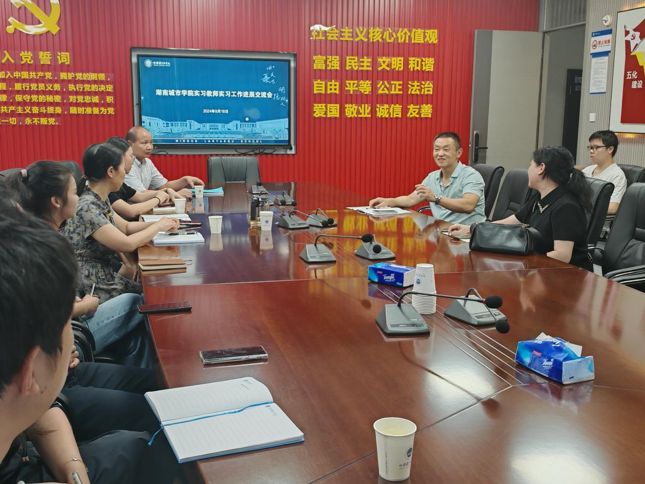 本网讯(通讯员 罗逸平)2024年9月19日,校内实习指导老师李夏云、罗逸平奔赴宁乡蓝月谷教育集团开展实习检查工作,实地了解suncitygroup太阳集团实习生工作和生活情况,并就suncitygroup太阳集团与蓝月谷学校进一步推动实习管理工作科学化、提高实习生的教学水平等探讨新路径。蓝月谷学校殷妃副校长和初中部教务副主任姜乾等8位老师参加了本次座谈会,suncitygroup太阳集团16位实习生一并旁听。