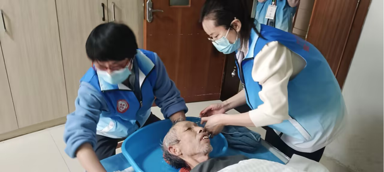 活动当天,志愿者们首先与医护人员开展深入交流,系统学习基础医疗护理知识。随后分组在各个科室病房开展服务。他们身着统一的志愿者服装,逐一走访各个病房,耐心询问患者的身体状况,认真倾听他们的心声,为患者们提供了贴心的心灵慰藉。在老年病房,志愿者们化身"临时家人",为老人梳洗整理、陪护聊天,听他们讲述往昔岁月;在康复病区,志愿者们协助患者进行行走训练,耐心细致地做好每一步防护。